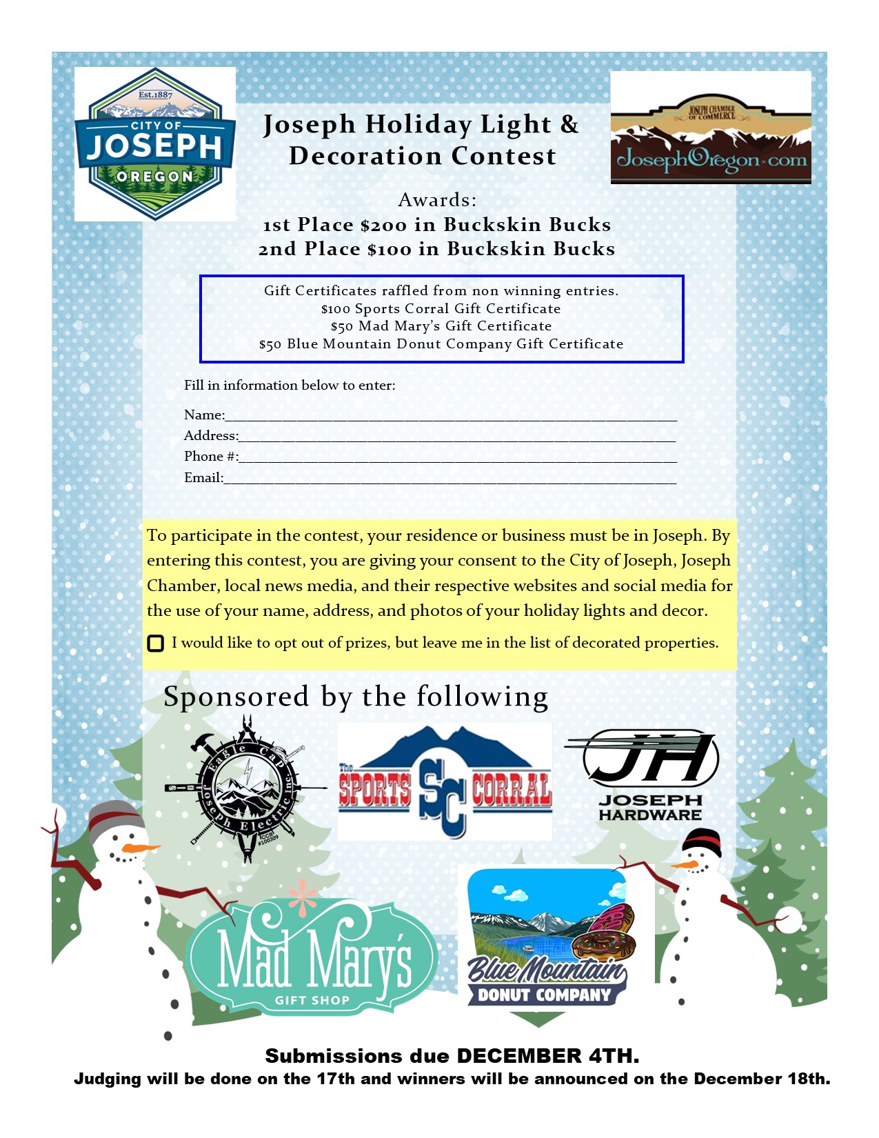 Joseph Holiday Light & Decoration Contest Entry Form